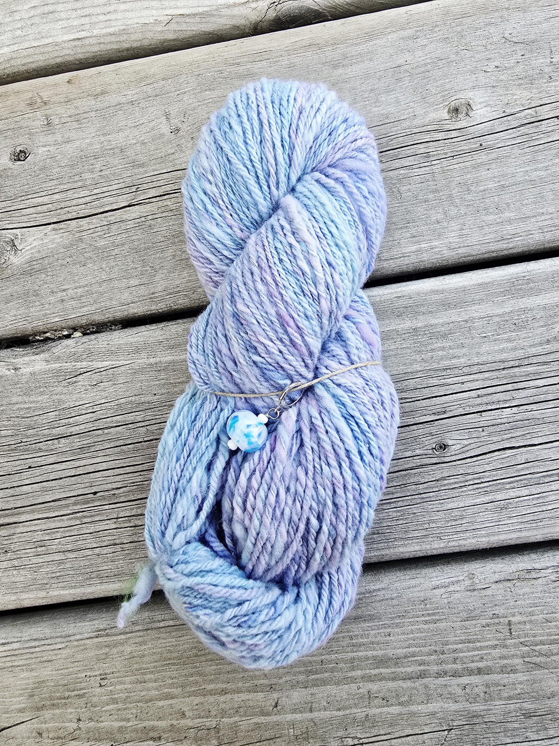 "Spring Lilac" hand dyed/hand spun art yarn. 100% Targhee wool. 100g 150m/165 yds. Chunky weight.