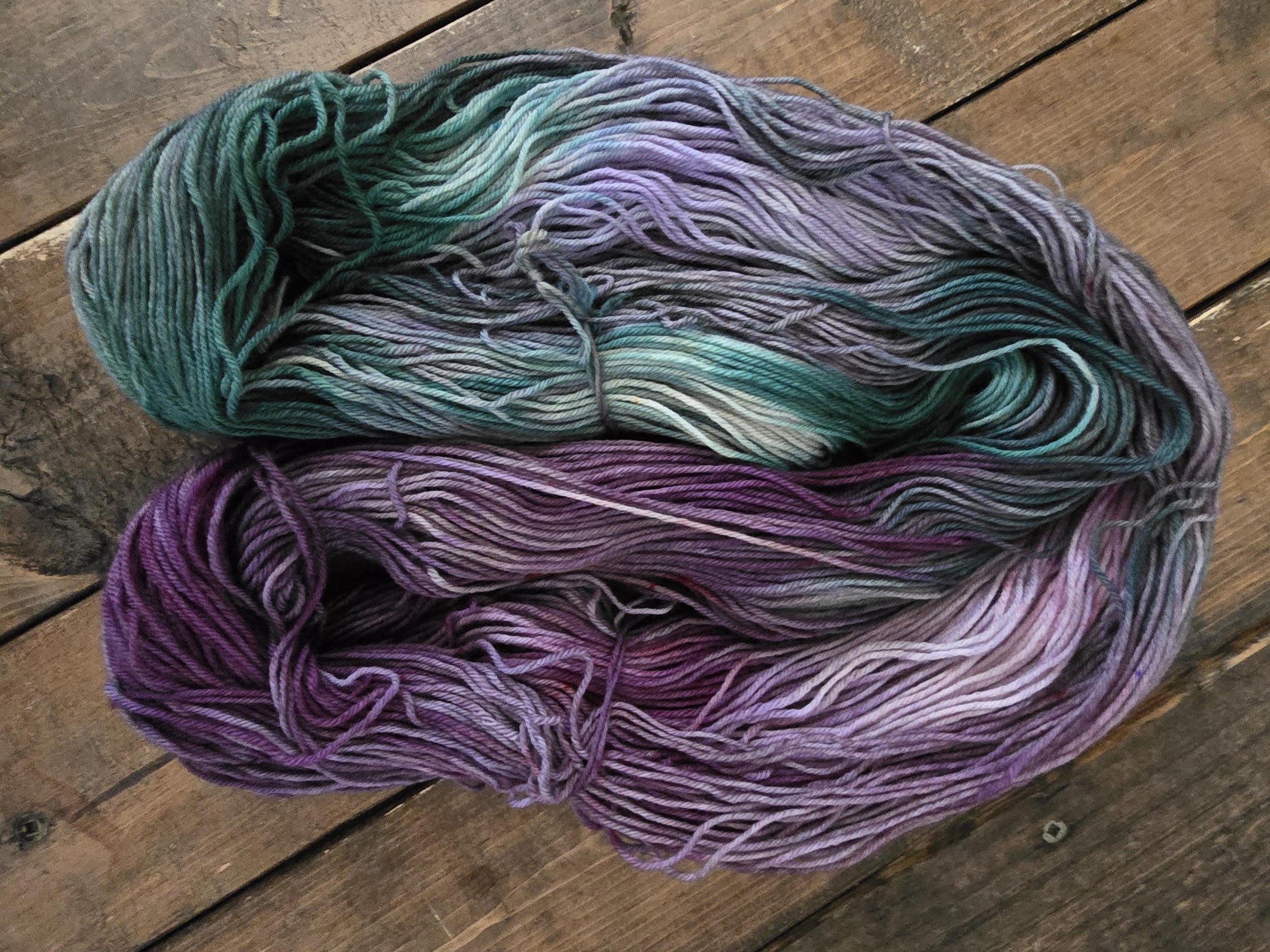 Dk Weight 75/25 superwash merino and nylon. 100g 225m/246yds Includes a handmade matching lampwork glass stitch marker.