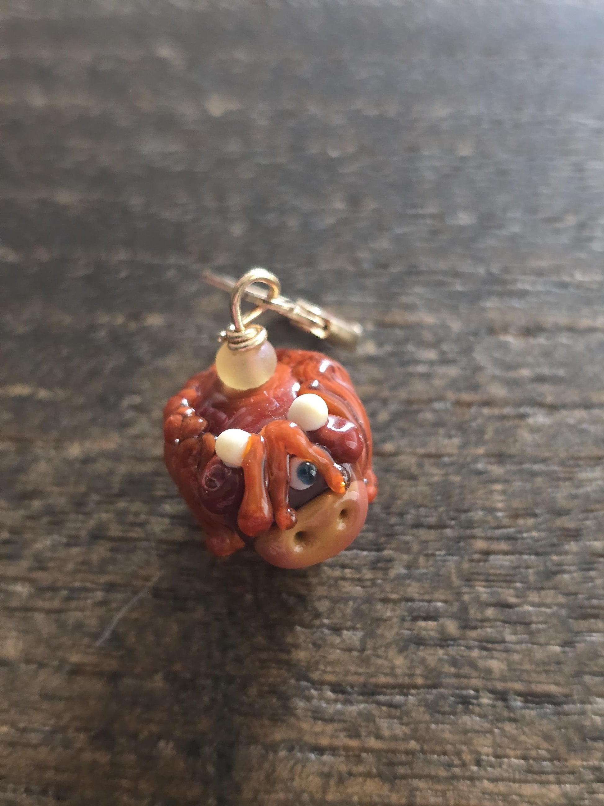 I hand make the beads for these stitch markers using Italian glass in a glass blowing torch. They are kiln annealed for durability. The clasp opens making them perfect for both knitting and crochet projects, and for use as stitch markers and projects keepers.