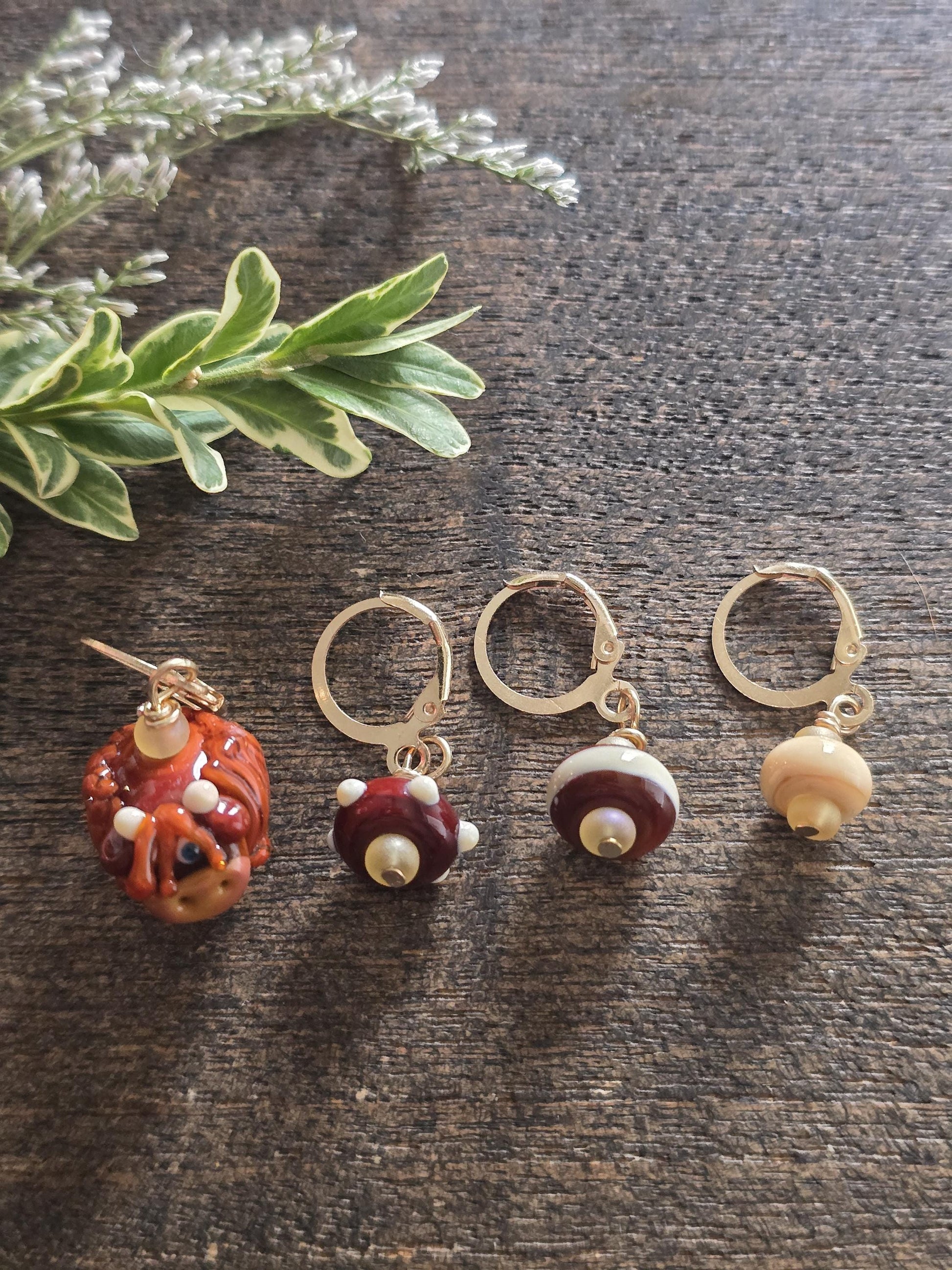 Set of 4 handmade lampwork glass stitch markers