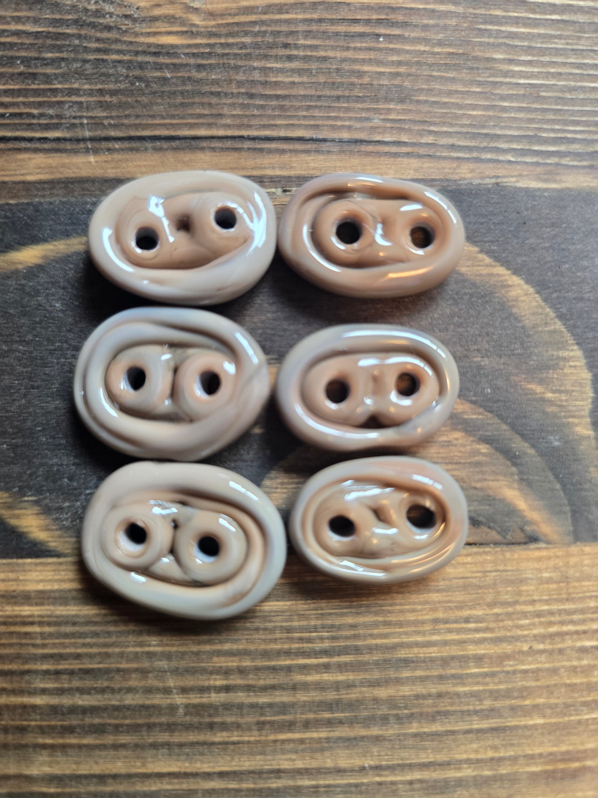 I make these buttons using Italian glass in a glass blowing torch. They are kiln annealed for durability