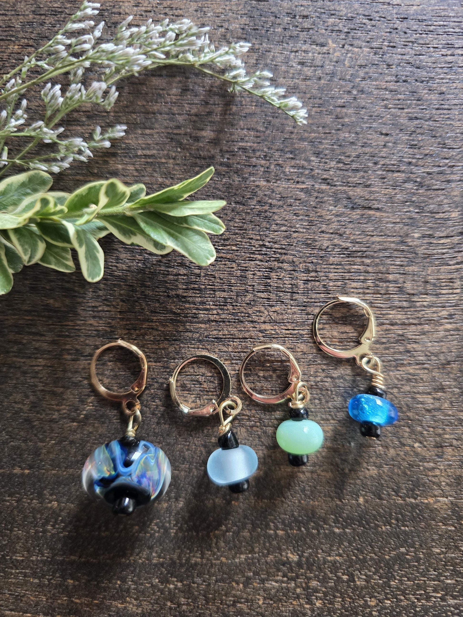 Set of 4 handmade lampwork glass stitch markers. A progress keeper with 3 matching stitch markers